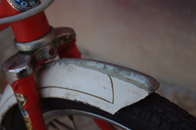 Uma Vilar Sport (roda 12) com data provável de 1975. Tal como mandavam as regras numa época em que as bicicletas ainda não eram um objecto de consumo rápido, aqui quase não há plásticos, é tudo à base de aço, e por isso, com um peso nada agradável de ser puxado por uma criança de 4/5 anos. Mas, a mim não me incomoda nada, é precisamente disso que gosto, bicicletas para durar.