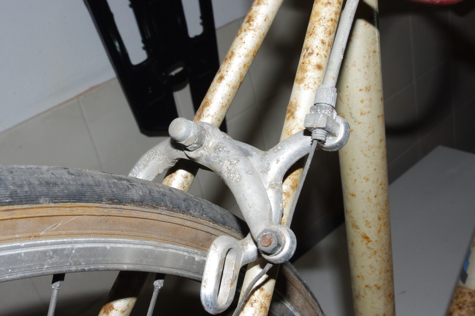 Como não tenho intenção de fazer malabarismos ou acrobacias com a bicicleta, decidi comprar um quadro velho e de gama baixa. Não tinha muito por onde escolher em roda 28, e principalmente pelo preço que estava disposto a pagar. Acabei por trazer esta Confersil de 10 velocidades incompleta.